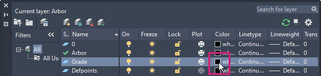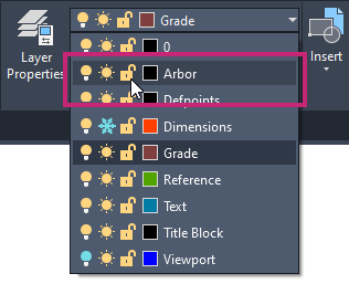 Note:You can also set a layer current on the Layer Properties Manager. Select a layer and click Set Current to set the layer current, or double-click the name of the layer in the Name column.