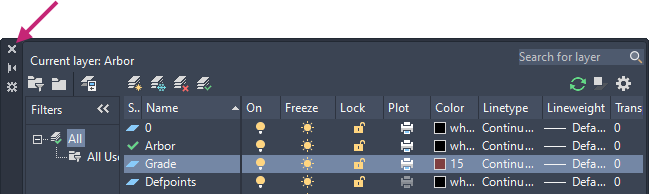 On the Layer Properties Manager, click the Close button on the palette's title bar to close the palette.