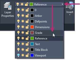 On the ribbon, click Home tab > Layers panel > Layers drop-down list and select Grade.