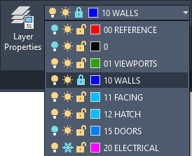 Layers are used to help control the appearance and visibility of objects along with the ability to lock objects so they can't be selected and accidentally modified. You manage layers in a drawing with the Layer Properties Manager. The Layer Properties Manager is a palette that can be used to create and modify layers. Here's what you might see in the Layer Properties Manager for a drawing that represents a floor plan.