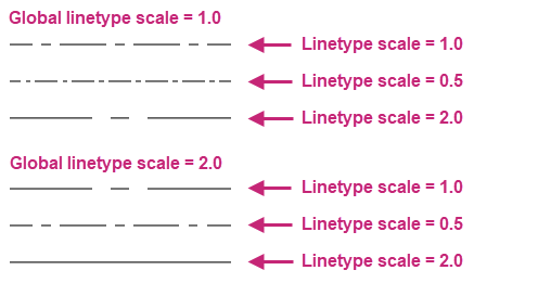 When you scale views in layout viewports, you can create inconsistencies in the appearance of linetypes. In non-continuous linetypes, the length of dashes and gaps between them and dots may increase or decrease. You can set the scaling to correspond to the model or layout scale or to remain the same at any zoom scale.