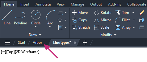 Switch to the arbor.dwg sample file by clicking the Arbor drawing file tab.