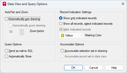 Control how linked objects are displayed in the current drawing when you select their corresponding records in the Data View window.