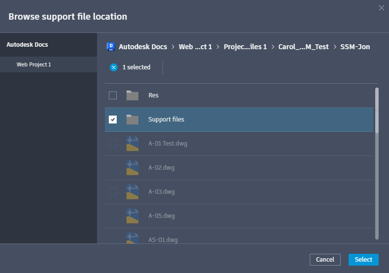 Note: By default, cloud sheet sets use the support files such as drawing templates, plot styles, and fonts (.shx and .ttf) stored in the AutoCAD web app. For more information about uploading and managing support files, see the File Management topic in the AutoCAD web app Help.