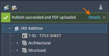 6. Once the publishing process is finished, on the notification, click Details to view information including any errors or warnings about the published job.
