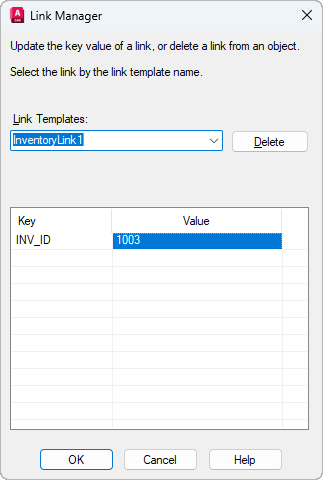 Displays all key values that are defined for the selected link. To display a list of values for a specific field, click a Value cell and choose [...].
