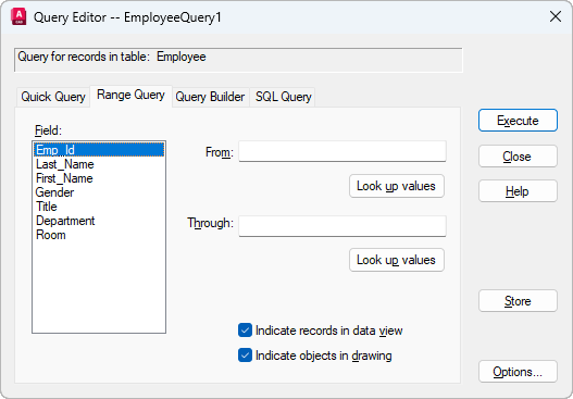 Specifies the first value of the range. The query returns all records or graphical objects that are greater than or equal to this value.