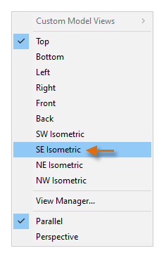- To return to a standard view, click [Custom] from the viewport controls and choose SE Isometric again.