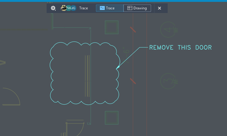 Trace provides a safe space to provide feedback to a drawing without altering the existing drawing. The analogy is of a virtual collaborative tracing paper that is laid over the drawing that allows collaborators to add markups and comments on the drawing.