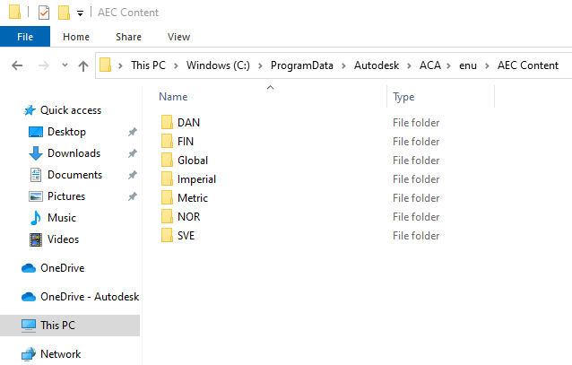 Copy the path from AEC DesignCenter Content and open this path in File Explorer.
