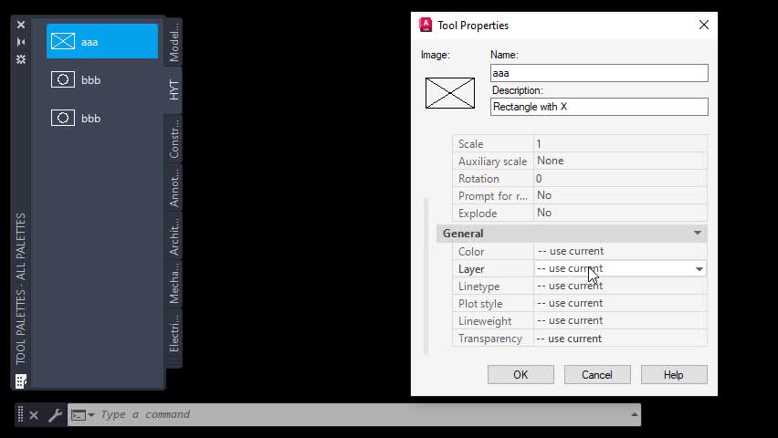 15. Experiment by adding some other blocks to the palette and changing the default settings. To delete the HYT palette, right-click any unused area inside the HYT palette and choose Delete.