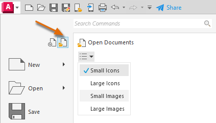 Note: The preview display option that you chose remains in both the Recent Documents and Open Documents quick menus.