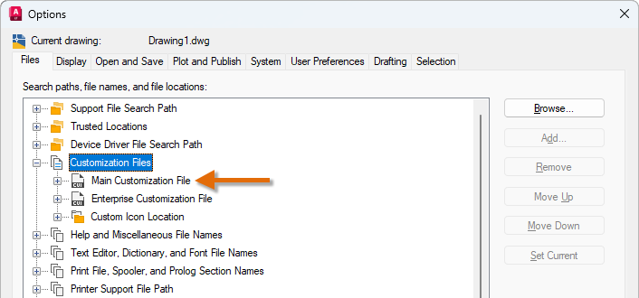Customization (CUI/CUIx) files define user interface elements such as the Quick Access toolbar (QAT), ribbon panels and tabs, palettes, “classic” toolbars, and pull-down menus. Based on the previous release from which you are migrating, the Migrate Custom Settings utility looks for the CUI or CUIx file specified by the Main Customization File setting. The main customization file is migrated in addition to the partial customization files loaded in the main CUI/CUIx file.