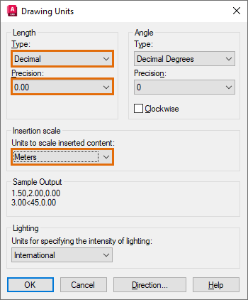 3. In the Drawing Units dialog box, specify the following and click OK.