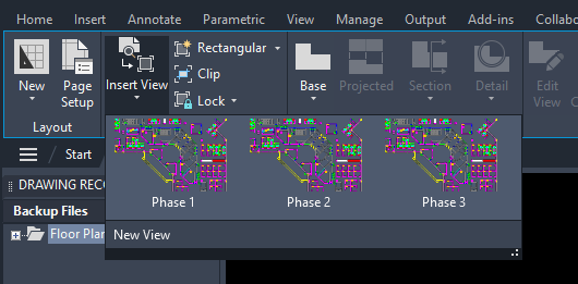 - Click the Insert View drop-down menu on the Layout Viewports panel.