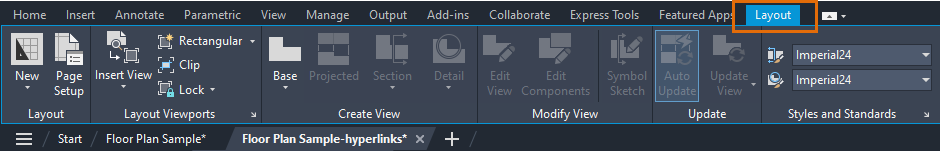 - Switch to the layout where you want to create the viewport. Or create a layout.