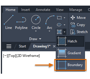 - From the Home tab, Draw panel, click Boundary or enter the BOUNDARY command.