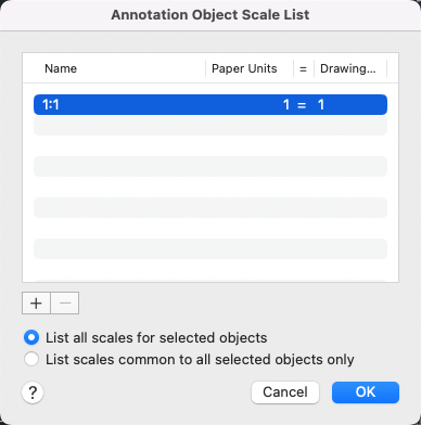 Specifies that all scales supported by the selected objects are displayed in the Object Scale List.