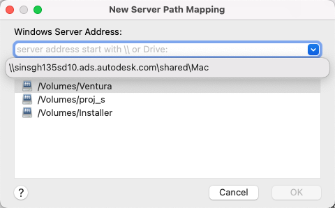 - Click the dropdown menu to find the Windows path of the missing xref file and map it to shared address in Mac.