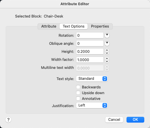Defines the layer that the attribute is on and the color, lineweight, and linetype for the attribute's line. If the drawing uses plot styles, you can assign a plot style to the attribute using the Properties tab.