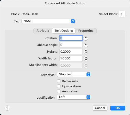 Specifies the text style for the attribute text. Default values for this text style are assigned to the text properties displayed in this dialog box.