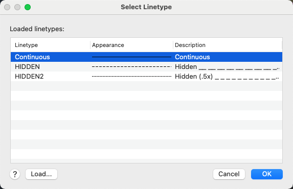 Displays the Load or Reload Linetypes dialog box, in which you can load selected linetypes into the drawing and add them to the list of linetypes.