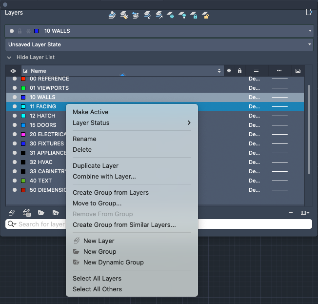 Note: Be careful about deleting layers if you are working on a drawing in a shared project or one based on a set of layering standards. - Duplicate Layer