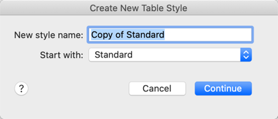 Note: You can't delete the current table style or the Standard table style. To change the current table style, right-click a table style and select Set Current.