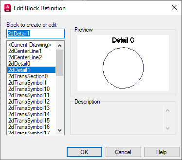 3. Double-click the Detail C text or the circle adjacent to the text to display the Edit Block Definition dialog box.