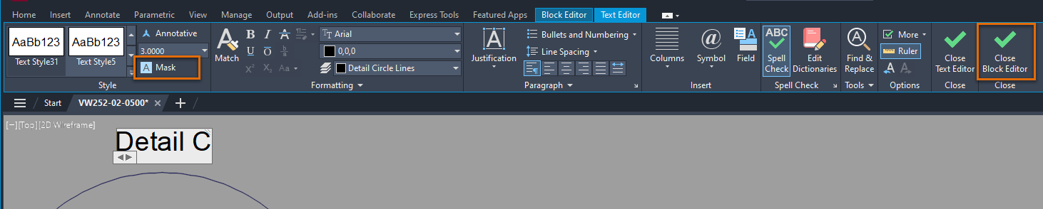The Detail C callout is a block that contains the multiline text for which we want to add a background mask.