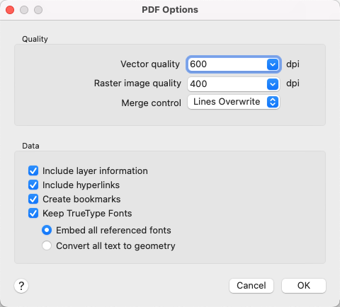 - Controls the resolution of raster images. If the PDF file is intended for printing from a viewer, select a resolution to match the output of the plotter or printer. If the PDF file is intended for on-screen viewing select a high resolutions (above 2400 dpi). The raster image quality cannot exceed the vector image quality.