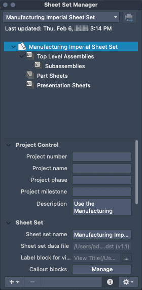 Details Panel. Displays the properties for the item selected in the sheet set tree view. At the bottom pane of the Sheet Set Manager, scroll up or down to view the available properties for the selected item.
