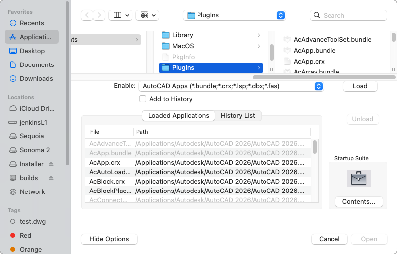 You cannot add applications that you load with the AutoCAD 2026 web browser to the Startup Suite.