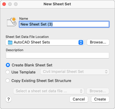 Creates a new blank sheet set, or a sheet set based on a template or one derived from an existing sheet set data structure.