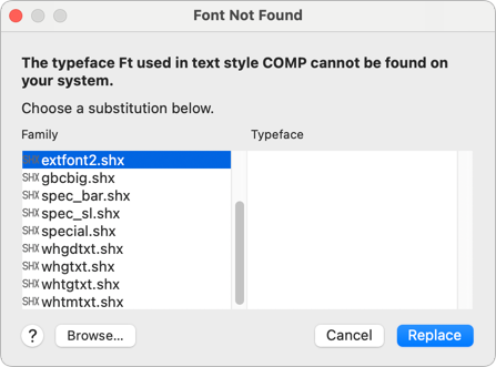 When you open a drawing with a missing font file, this dialog box is displayed to allow you to choose a replacement font file for the style.