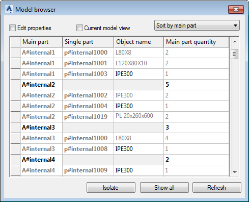 Check the Model browser to see the reflected changes for your single parts and assemblies: