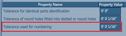 - Tolerance: When the geometry is compared, Advance Steel uses a prest tolerance value to allow very small differences to not interfere with the grouping process. This tolerance works as a length based setting, used not only to compare one of the object sizes, but it can also represent a combination of geometric differences. You can configure the tolerance using the Tolerance used for numbering default value from