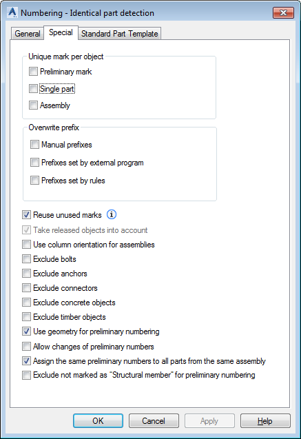 Exclude not marked as "Structural member" for preliminary numbering | Elements that are not marked as structural members in the Behavior tab of their properties are not taken into account at numbering. |