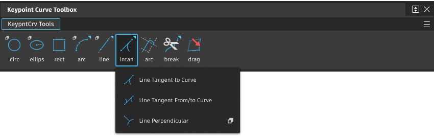 Lets you create a keypoint line tangent. There are three Keypoint Line Tangent tools: Line Tangent to Curve, Line Tangent from/to Curve, and Line Perpendicular: