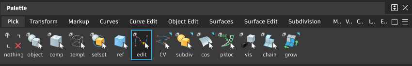 Picks or unpicks edit points on curves. If an edit point is already picked, hold the Ctrl key and press the arrow keys to pick surrounding CV, edit points, hulls or blend curve control points one at a time.