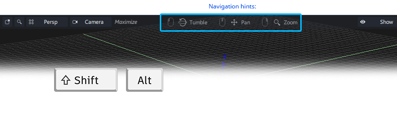 for viewing is determined by the navigation mode: Camera-based or Object-based.