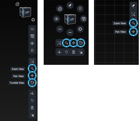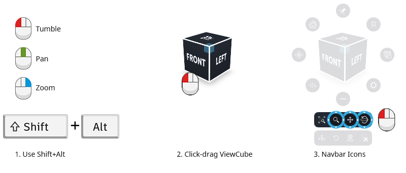 keys while using the mouse buttons - Click-drag on the ViewCube (tumble only, in the perspective view)