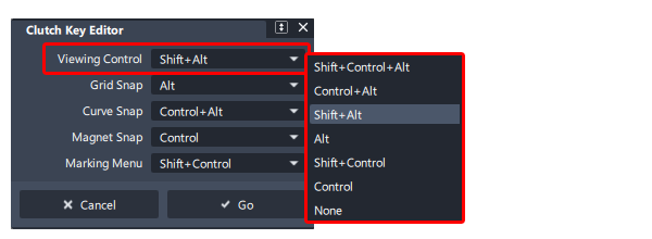 - Hotkey Editor - go to the section: Special > Generally Useful Functions > Toggle Viewing Control Action