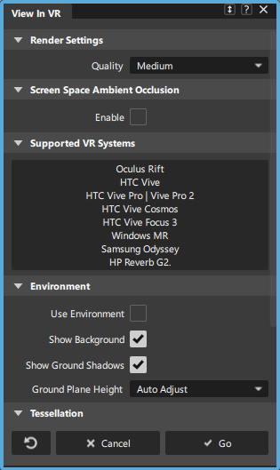 Show Background - Toggles the visibility of the environment background on and off in VR.