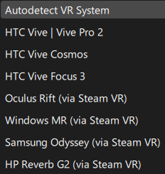 VR Device - Select the VR device that you are using, or use the Autodetect VR System option to automatically detect your VR device.