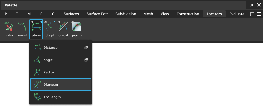 The locator appears. You can move the new measurement while the mouse button is down. When you release the mouse button, the measurement is attached to the circle.
