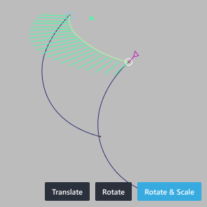 Note: You can move the control handles along the curve by clicking on them and dragging the small purple arrow along the curve.Click on the Rotate & Scale button in the window.