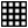 The Bulge texture represents a grid of white squares which fade to grey toward their edges. Use the Bulge texture as a bump or displacement map to create surface bulges, as a transparency map to simulate windows that are dirty around the edges, or as a color map to simulate tiles.