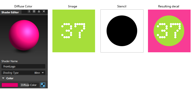 Stencil - Use a mask image to define the outline for a decal effect. The image is typically black and white, with white areas defining the parts of the image to ignore.