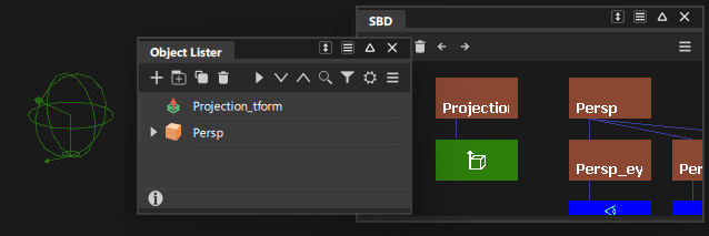 The Texture Placement Object also appears in the Object Lister and the SBD window as a separate transformation node beneath the texture node.